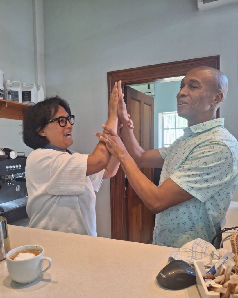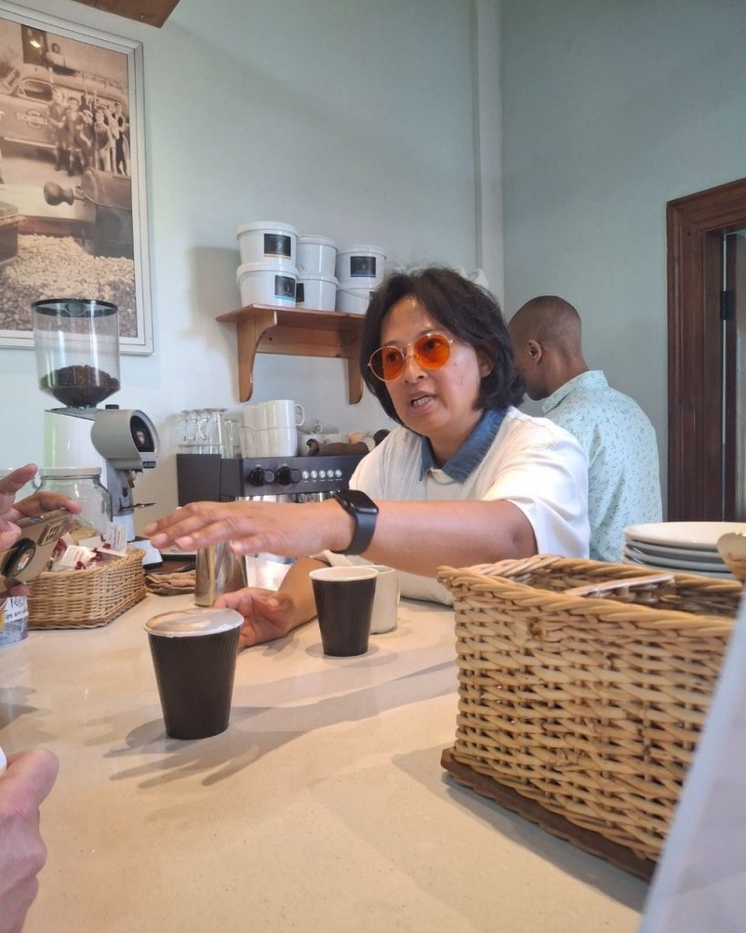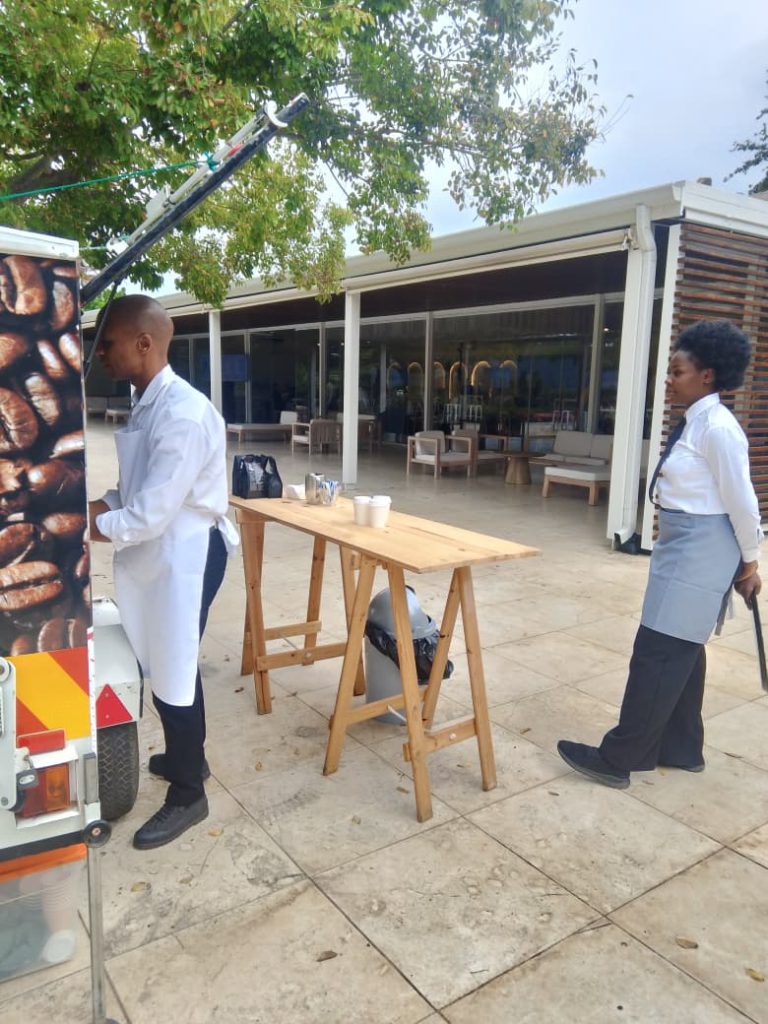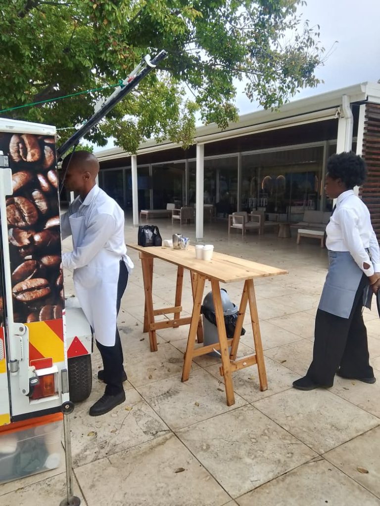 Joseph and his student Nadia from France @ Refresh Making coffee for the clients